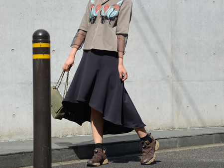 前お昼間のblogで紹介させて頂いた時はサンダルだったので、今回はスカート×スニーカーバージョンで^^