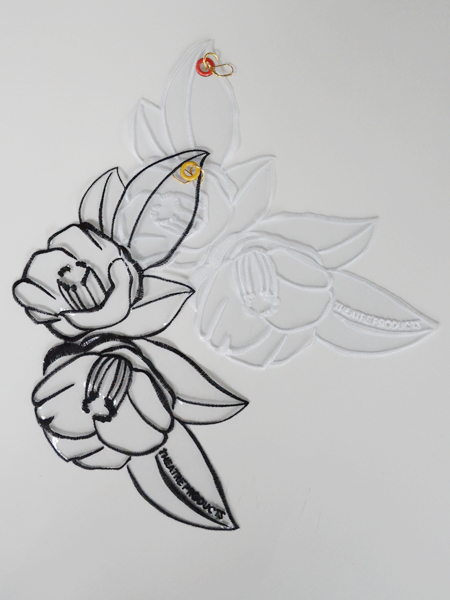 サイズがかなり大きいですが、実際は塩化ビニールに刺繍を入れてあるので、とても軽くてつけやすいですよ^^