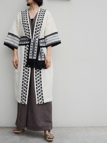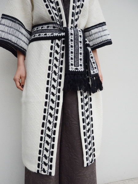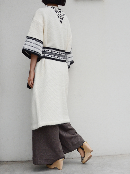 ニットガウンと言っても、生地自体がこぎん刺しのように細かく編み込まれたパターンを贅沢に全面に使用してるのがこちらの写真でお分かりいただけると思います。