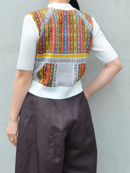 白地に黄色、オレンジ、ブルーと、エキゾチックながらもどこか懐かしいような色合い。