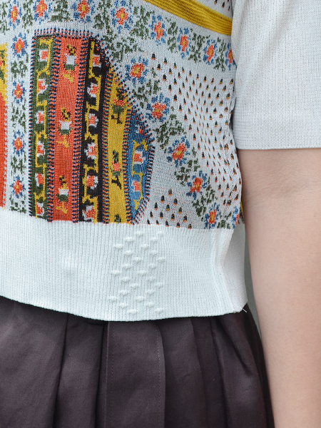 この細かい柄を機械で正確に編み上げるにはかなり高度な技術がないと難しいそう。