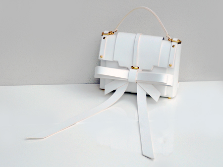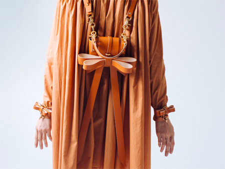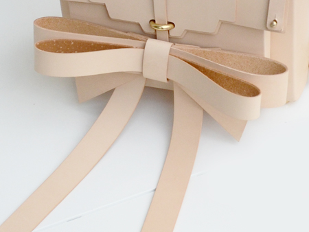 リボンと言うと一般的に甘く可愛らしいモチーフですが、その全てがレザーで作られているため、ただ少女的な可愛らしさがあるだけでなく、どこか無機質でスマートな雰囲気も兼ね合わさっているところがNielspeeraerのブランドが、ジェンダーレスで愛されている理由。