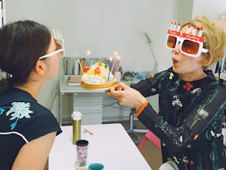 1日遅れましたが、朝からChieさん、mayumiさんとスタンバイしてサプライズバースデーパーティーの始まりです。