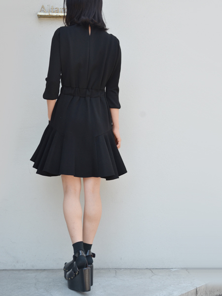 お尻の下あたりからフレアになるようにデザインされているので、フレアスカートのミニワンピースという可愛らしくなりがちなアイテムですが、とても大人に仕上がっております。