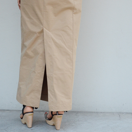 伸縮する生地ではないので、後ろの裾部分のスリットで外を歩いたり階段を上ったりも実用的になっております。