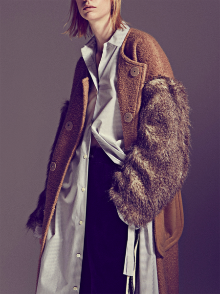 ボリュームのある袖のファーと、大きなポケットが特長的です。