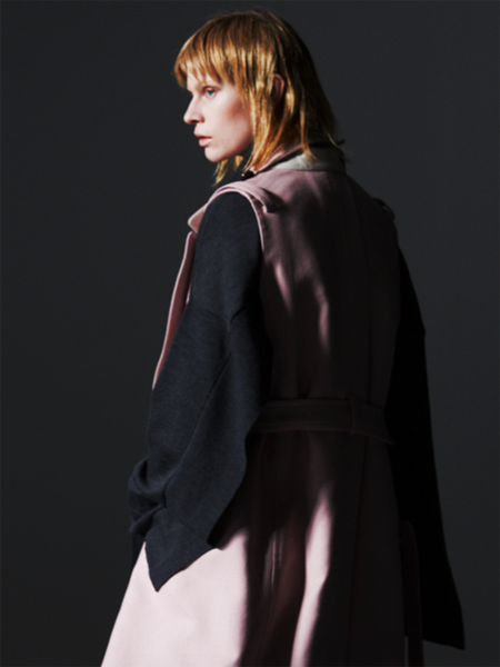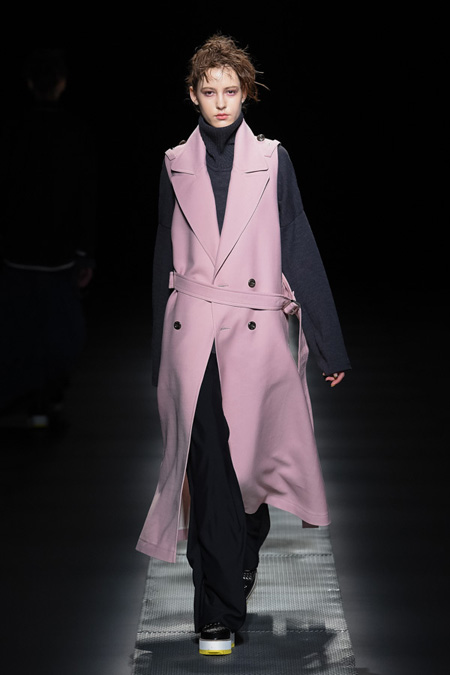 ピンクのコートも、フェミンではなく完全にモード。