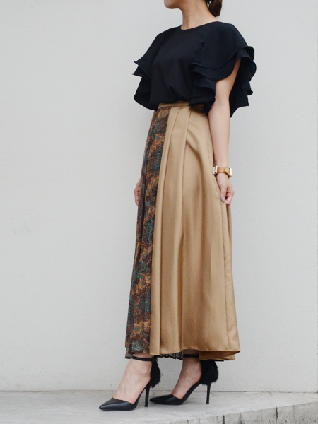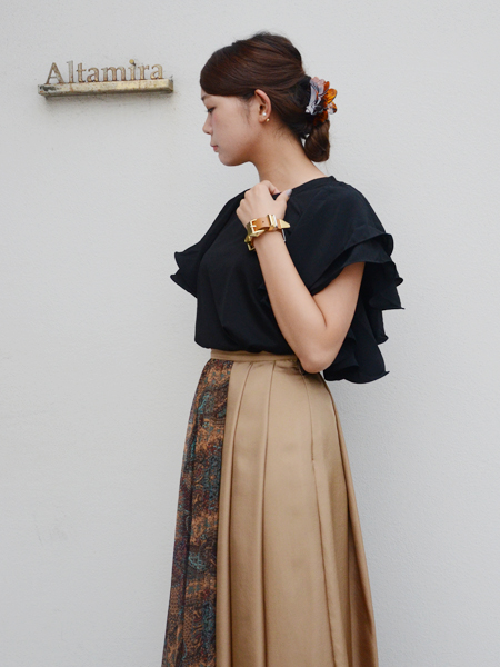 先日ご紹介したmullerのロングスカートを合わせてクラシカルエレガントに。