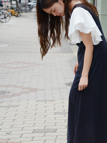 ラッフル袖を生かしてレイヤードスタイルもオススメです。