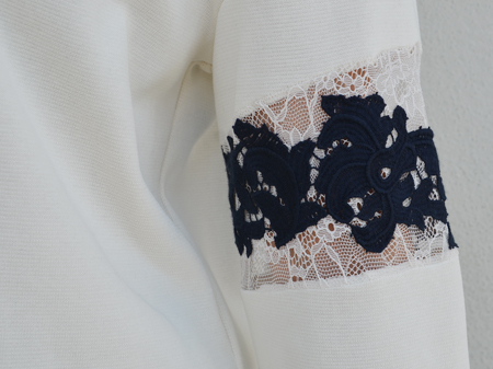 繊細なレースの上に重ねた厚みのあるコットンレースが切り替えし部分全体を立体的に見せてくれます。