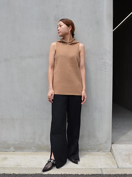 パキッとモードなブラックも絶対使いやすいと思いつつ、カラーものに馴染むキャメルも欲しいなと私は2色買いを考えるくらいお気に入りのニット。