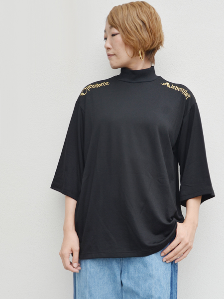 黒のTシャツにはゴールドの刺繍です。