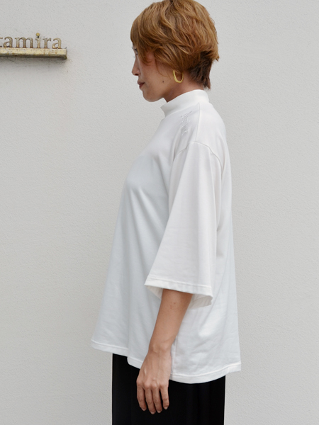 今回、whiteとblackの2色展開ですが、ご紹介している白のTシャツには白の刺繍。