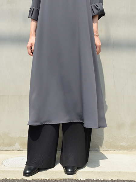 トップス部分はスッキリ、スカート部分はゆったりとフレアなシルエットが特徴的です。