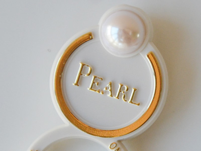 先端のパールは両面ついておりますが、前後でそれぞれ異なるロゴが刻まれています。