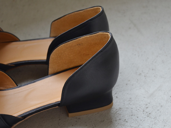 スカラのデザインをそのままに、ヒールを無くして幅広甲高さんでも楽に履けるように開発された木型。