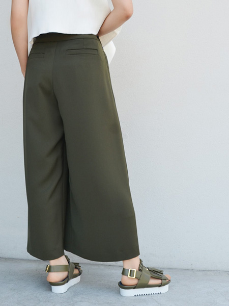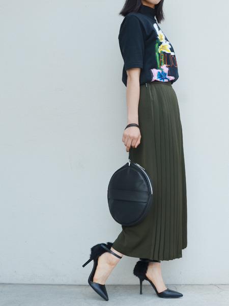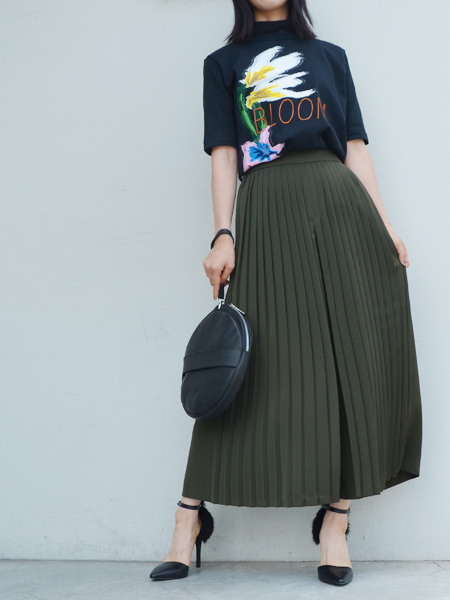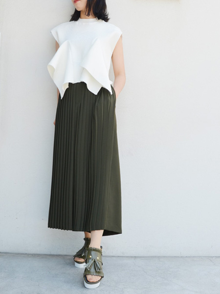 一見スカートのようにも見える、ボリューム感のあるプリーツパンツ。