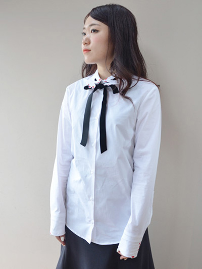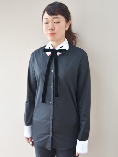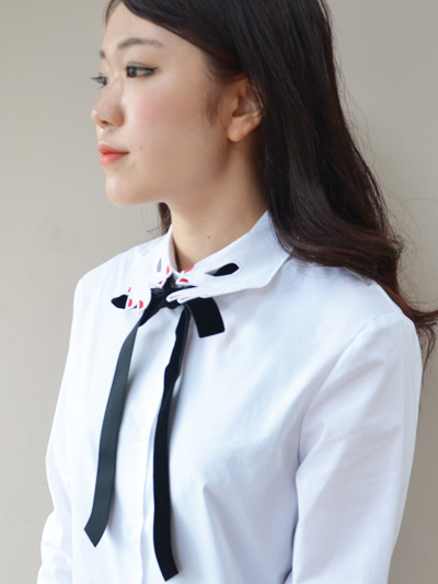 海外の映画に出てきそうな白シャツ×ブラックリボンの配色が個人的に好みです♡