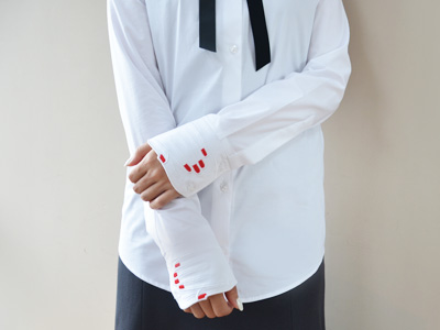 定番のハンド襟シャツ。