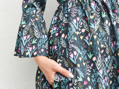 黒地にカラフルなお花が散りばめられていますが、パキっとビビッドなカラーではなく少しくすんだ色味なので、想像以上に大人な仕上がりです。