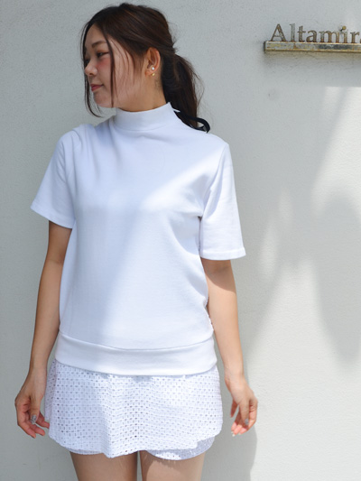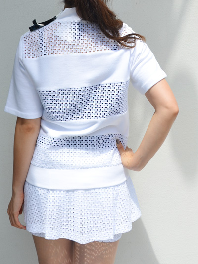 一緒に合わせたメッシュのショートパンツは一見ミニスカートに見えるようにデザイン。