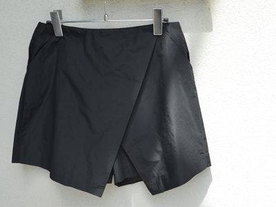 パンツの上から巻きスカートを重ねたようなデザインになっており、短めの丈感でも履きやすい。