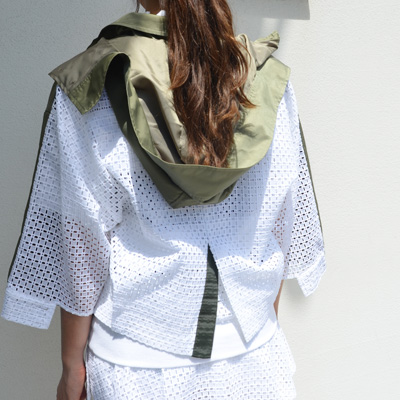 こちらはウエスト部分にメッシュがあしらわれたカーディガン。
