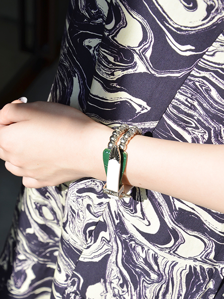メタルとレザーのコンビがTOGAらしいバングルはグリーンとブルーとホワイトの3色展開です。