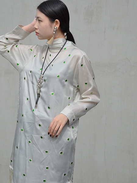 こちらは、キュプラ100パーセントで緑の丸いスタッズと