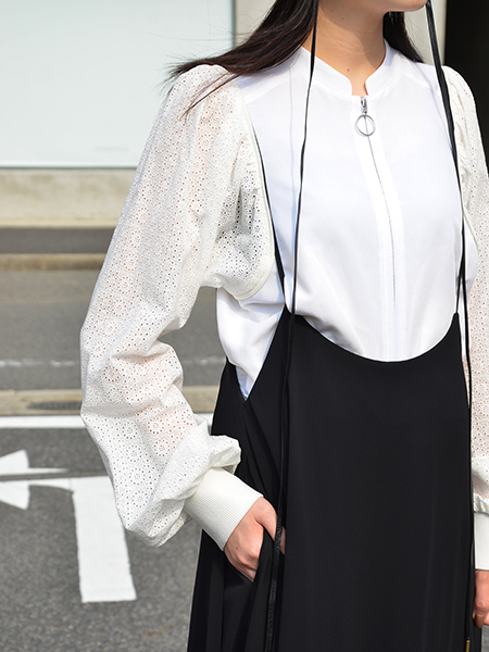 インナーにしているのはブルゾンなのですが、ブラウスのような雰囲気で着用してみました。