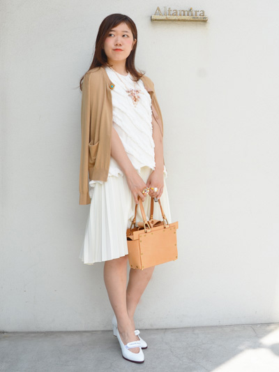 ノースリーブなのでこれからの時期にも着ていただけますし、なっちゃんのようにカーディガンを合わせたり、で肉のジャケットを着てカジュアルに着るのもオススメです^^