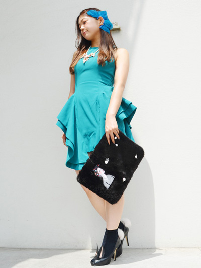 立体的になったスカートと鮮やかなグリーンのカラーが印象的です。
