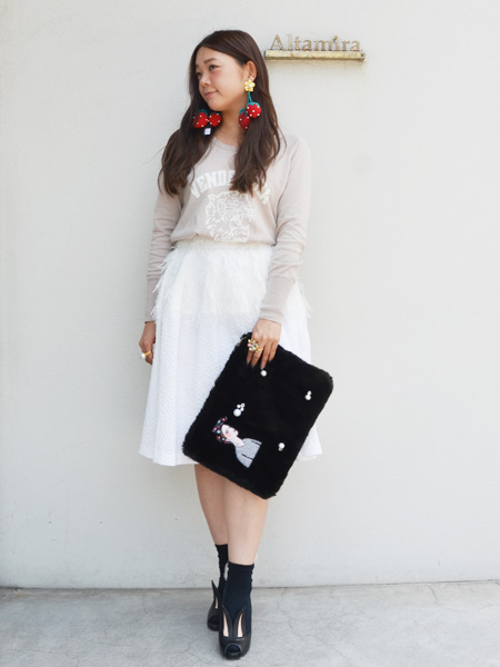 デザイン性の高いスカートをメインにしたオールホワイトコーデもおすめです。