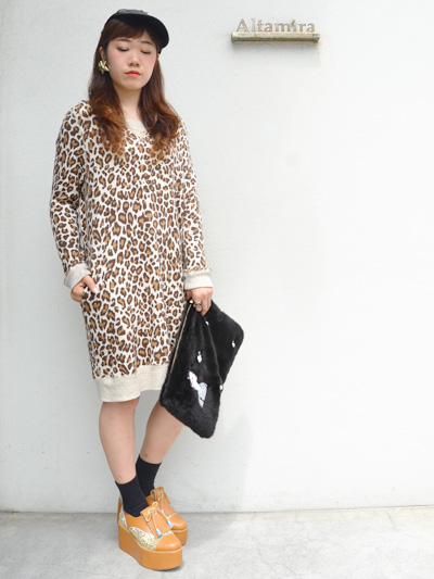 インパクトのあるレパード柄のyugeのトップス。