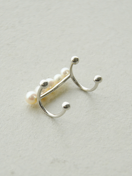 パールが綺麗に横並びになったデザインが上品なイヤーカフ。