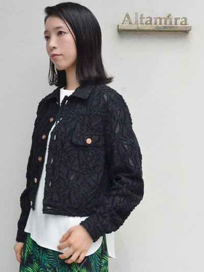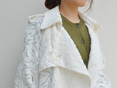 コットンやキュプラを使用した素材。立体的なお花がモコモコしているように見えるかもしれませんが、実際手にとって頂くと薄手で夏の終わりから活躍してくれそうです^^