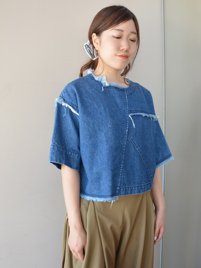 オールシーズンコーディネートに取り入れたいデニム素材ですが、半袖なのでちょどまさにいま活躍すること間違いなし、ですね。