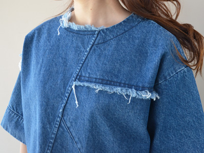 11オンス(生地の重量を表す単位。)の、1年を通して着られる、適度な厚みを持ったデニムにバイオストーン加工を施し、全体的に少し色を落として、表面の毛羽立ちをなくすことにより、柔らかい肌触りになります。