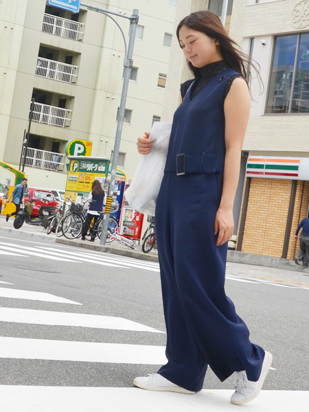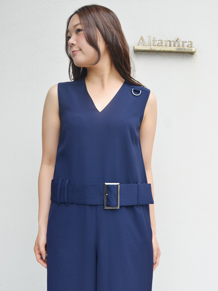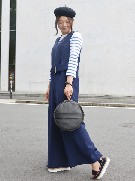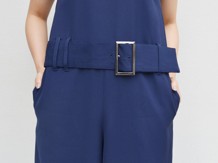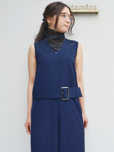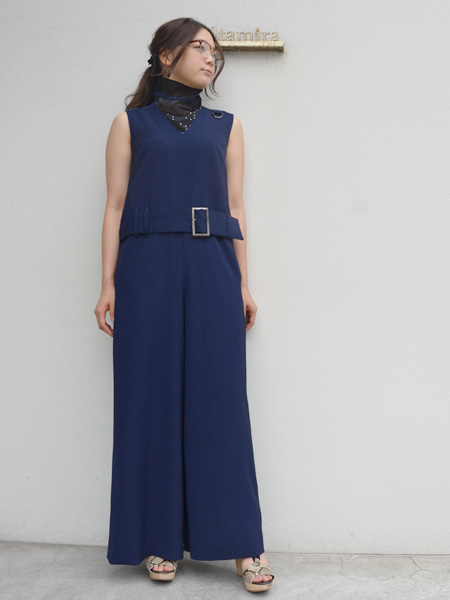ウエストの高めな位置についたベルトがインパクトがあり脚長効果も狙えます。