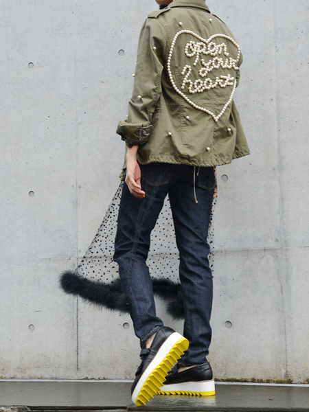 Tu es mon TRÉSORの甘さと毒っぽさのある絶妙なスタイルにUjohのローファー。