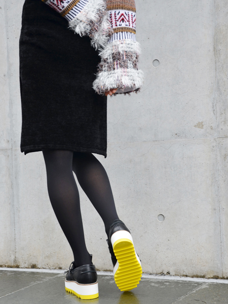 ヒールが軽量化されているため、見た目以上には履き心地は軽いのですが、このボリューム感は足が綺麗に見えるのでここぞとばかりスキニーパンツに挑戦します、笑