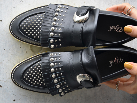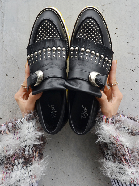 スタッズがハードな印象のローファーのご紹介です。