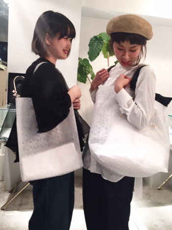 ご近所のカフェで働くお二人、仲良くmameのバッグを購入です♡