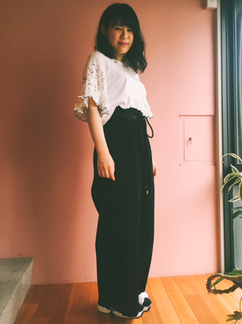 yukinaちゃん♡ いつもたくさん試着してくれるyukinaちゃん。 ENSORのteeとAKIRANAKAのパンツでこれまでよりぐっと大人っぽいスタイリングに挑戦です♡