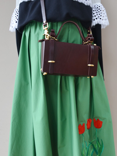 ガーリーなディテールもレザーで作ることでナチュラルでピリッとスパイシーな仕上がりです。
