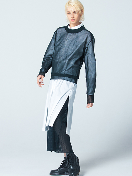 こちらはフェミニンに見えがちなレースを、あえてオーバーサイズにすることにより甘さが軽減され、カジュアルな印象で着用することが可能な一枚です。