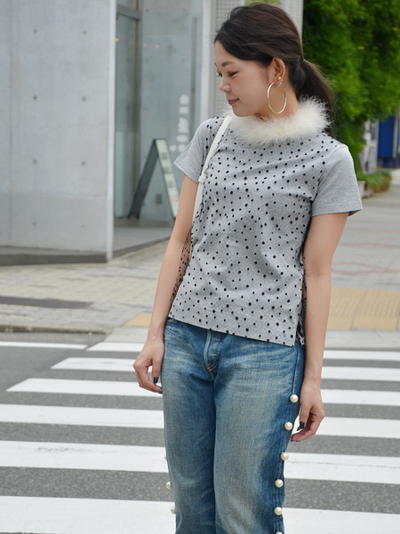 TRESORのチュール付きTシャツはLOOKでもデニムと合わせていた【Tu es mon TRÉSOR】らしいスタイル。