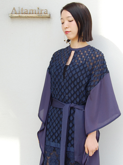 ふわふわとした立体的にカットされたジャガード生地が目を惹くポンチョドレスです。
