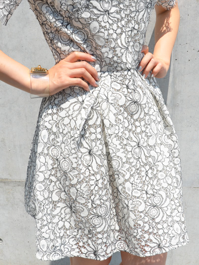 フェミニンな総レースですがモノトーンなのでおちついた印象に。