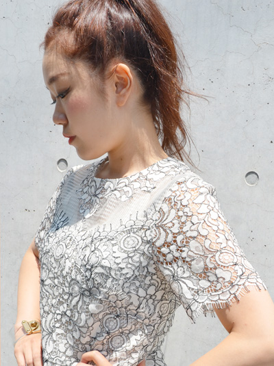首元のレースが華やかなため、最早アクセサリーいらずです。